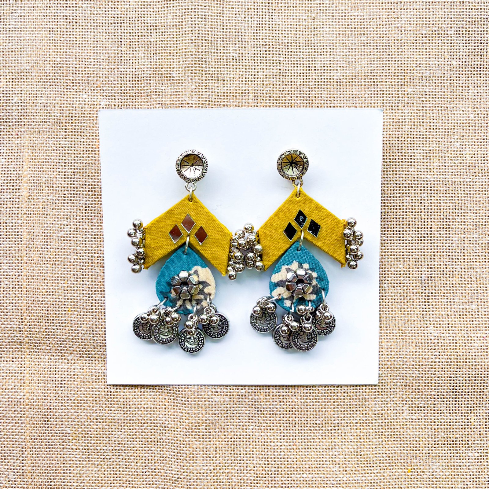 Our stunning mirror and Kori Rectangle Earrings are the perfect blend of traditional and contemporary design. These are light in weight and handcrafted with pure cotton material which are also available in a wide range of solid colors. The elegant combination makes it unique fir for any occasion. Weather to gift your loved ones or to treat yourself, this is a perfect pick for your collection.