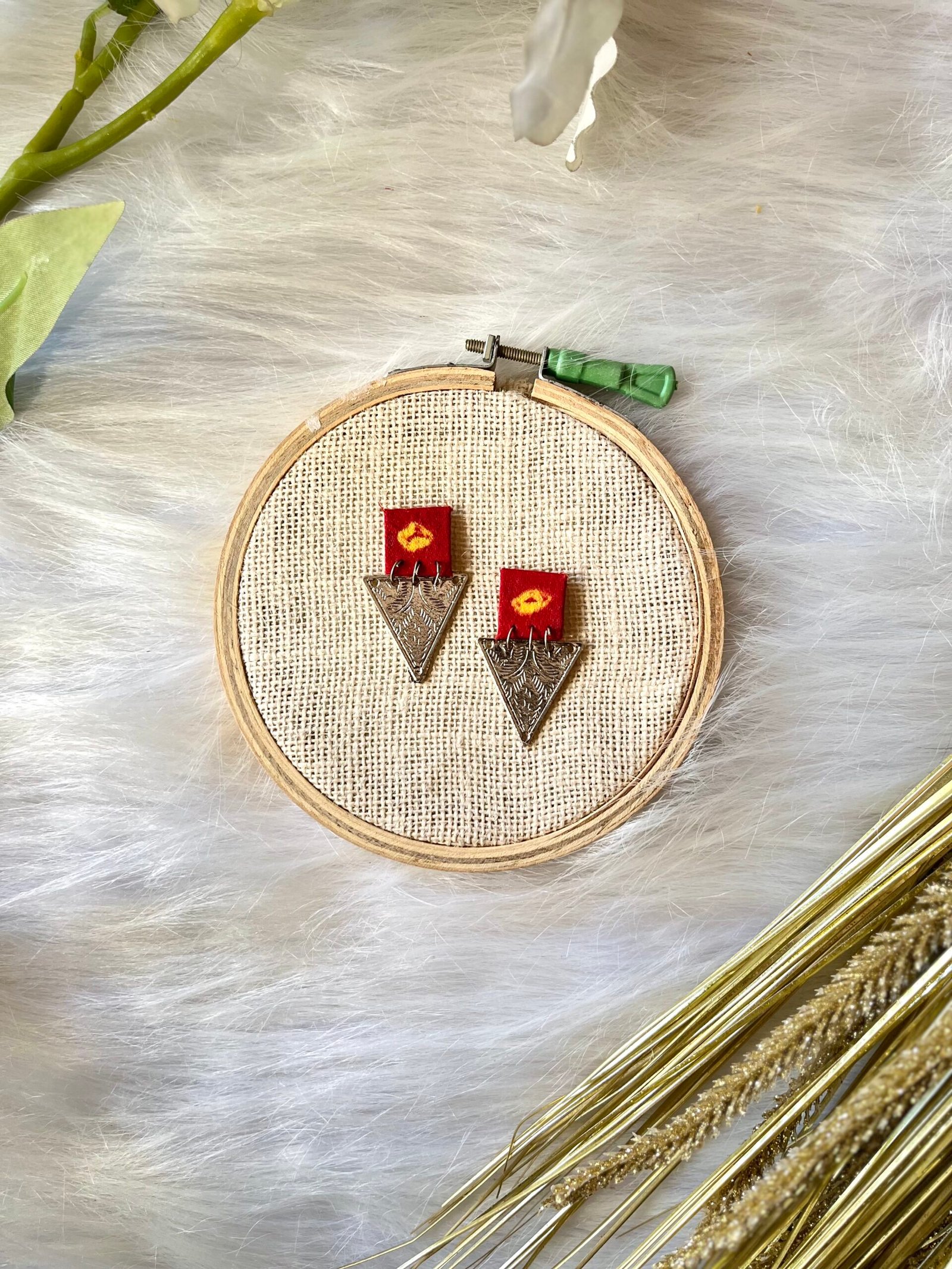 This minimalistic circular-shaped wine coloured stud earrings with the touch of ethnic mirror work & ghunghroo is handcrafted & light in weight making it a suitable for both ethnic & western fit. These are perfect for long hours of use and are a great pick to gift someone and is also available in a wide range of solid colors.